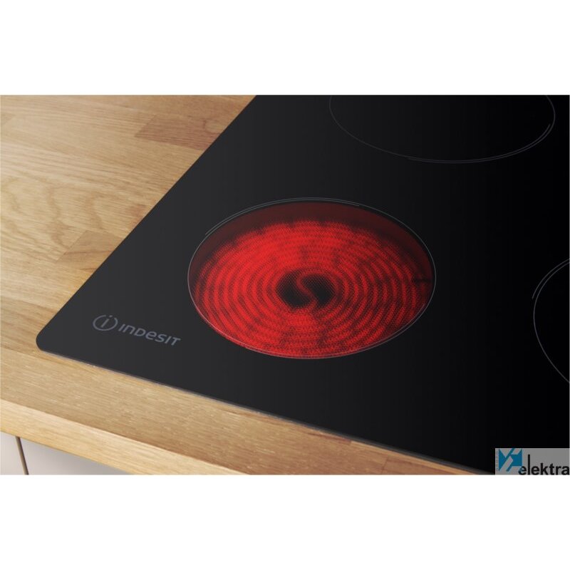 Indesit RI 161 C. Color del producto: Negro, Tipo de instalación: Integrado, Tipo de quemador: Cerámico. Tipo de control: Tocar, Tipo de visualizador: LED. Carga conectada (eléctrica): 6200 W, Voltaje de entrada AC: 220 - 240 V, Frecuencia de entrada AC: 50 - 60 Hz. Ancho: 580 mm, Profundidad: 510 mm, Altura: 46 mmRecipiente :