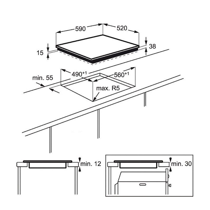 Placa vitrocerámira de 3 zonas. Biselada. Mandos digitales. Posición de los mandos: Frontal derecho. Controles iluminados. Zona frontal izquierda: Hilight ,1800W/180mm. Zona trasera izquierda: Luz alta ,1200W/145mm. Zona frontal medio: No , -Zona frontal derecha: zona de cocción de doble anillo, Luz alta, Paella , 1700/2700W/210/270mm. Sistema seguridad niños. Bloqueo de seguridad. Avisador acústico. Indicadores de calor residual. Nuevo sistema "Easy set up" sobre encimera.