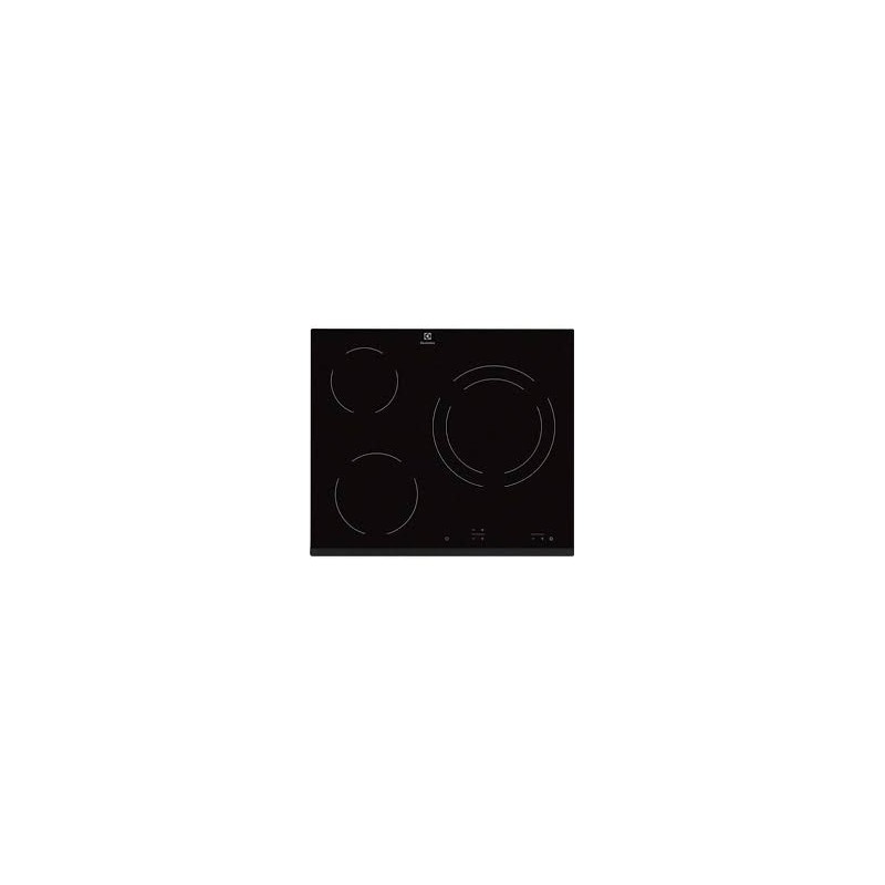 Electrolux EHF6231FOK. Color del producto: Negro, Tipo de instalación: Integrado, Tipo de quemador: Cerámico. Tipo de control: Tocar, Control de posición: Parte superior delantera. Carga conectada (eléctrica): 5700 W, Voltaje de entrada AC: 220 - 240 V, Frecuencia de entrada AC: 50 - 60 Hz. Ancho: 590 mm, Profundidad: 520 mm, Altura: 38 mmRecipiente :