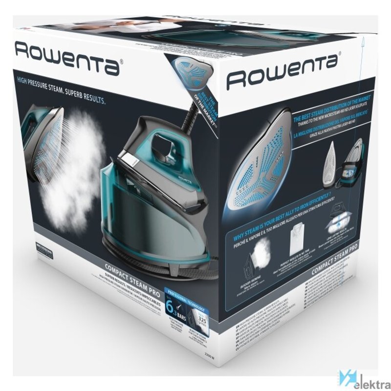 Rowenta DG7623. Potencia de la plancha: 2200 W, Aumenta el rendimiento de vapor: 325 g/min, Material de la suela/recubrimiento: Suela Microsteam 400 HD Láser. Longitud del cable: 1,7 m. Ancho: 21,3 mm, Profundidad: 34,2 mm, Altura: 28,5 mm. Potencia: 2200 W, País de origen: Francia. Ancho del paquete: 285 mm, Profundidad del paquete: 400 mm, Altura del paquete: 310 mmRecipiente :