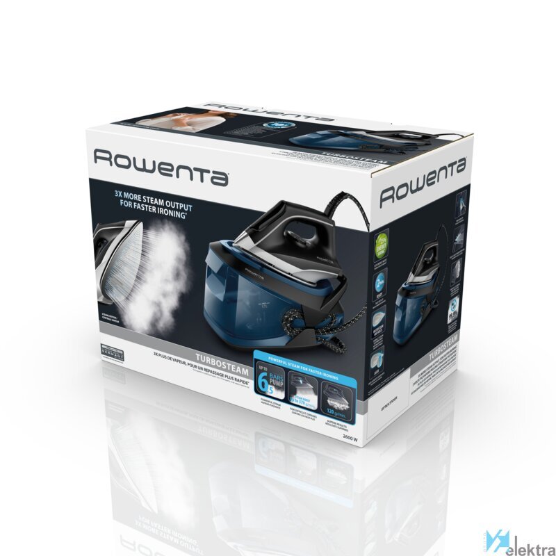 Rowenta VR8322. Potencia de la plancha: 2600 W, Aumenta el rendimiento de vapor: 370 g/min, Material de la suela/recubrimiento: Suela Microsteam 400 Láser. Longitud del cable: 1,98 m. Ancho: 204 mm, Profundidad: 344 mm, Altura: 284 mm. Potencia: 2600 W, País de origen: China. Ancho del paquete: 234 mm, Profundidad del paquete: 380 mm, Altura del paquete: 290 mmRecipiente :