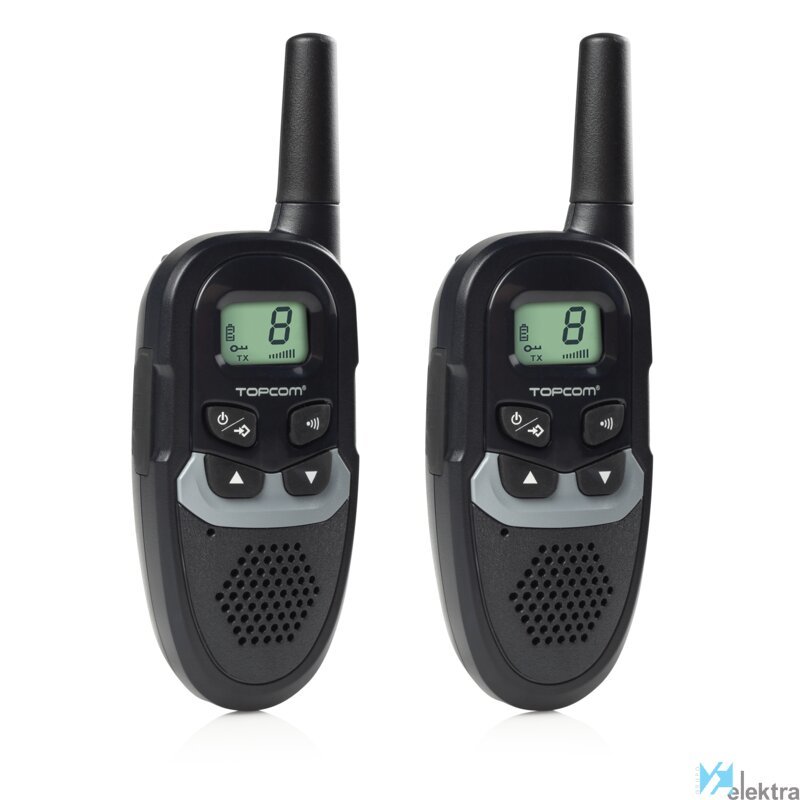 Topcom RC-6410 Walkie-Talkie - Twintalker 1304. Número de canales (total): 8 canales, Frecuencia de operación: 446 MHz, Alcance máximo: 6000 m. Peso: 130 g, Ancho del paquete: 165 mm, Profundidad del paquete: 75 mm. Peso del envase completo: 780 g, Longitud de la caja: 420 mm, Ancho de la caja principal: 205 mmRecipiente :