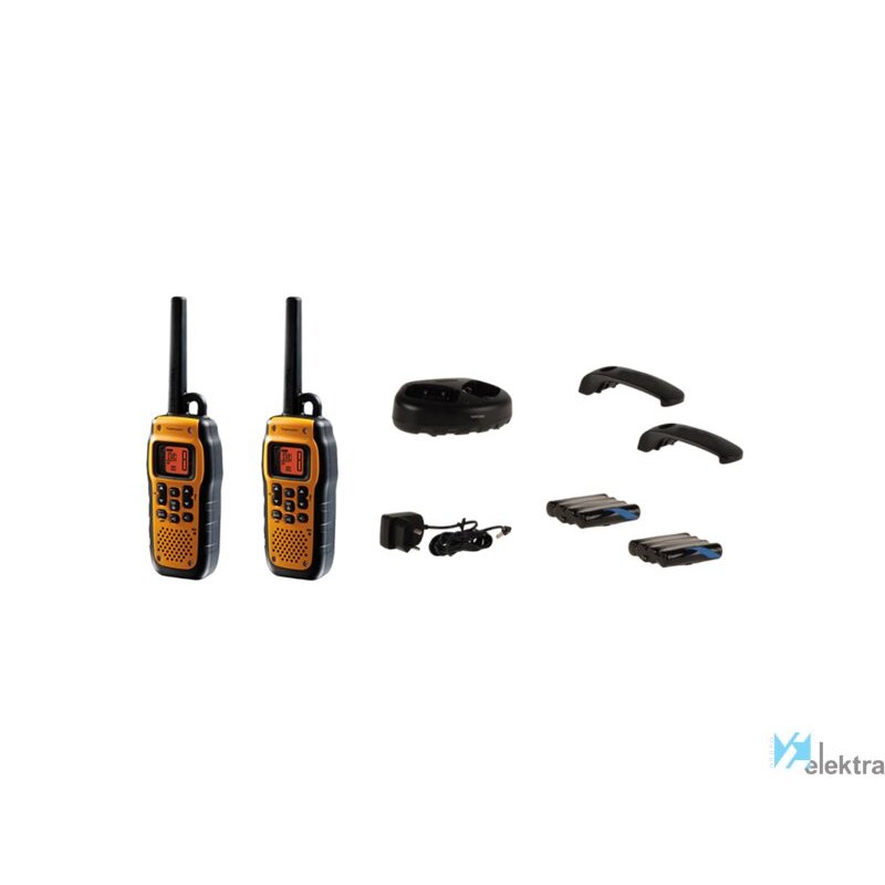 Topcom RC-6420 Walkie-Talkie - Protalker PT-1078. Número de canales (total): 8 canales, Frecuencia de operación: 446 MHz, Alcance máximo: 10000 m. Tipo de visualizador: LCD. Tipo de batería: AAA, Tecnología de batería: Níquel-metal hidruro (NiMH), Autonomía: 16 h. Peso: 650 g, Ancho del paquete: 175 mm, Profundidad del paquete: 248 mmRecipiente :