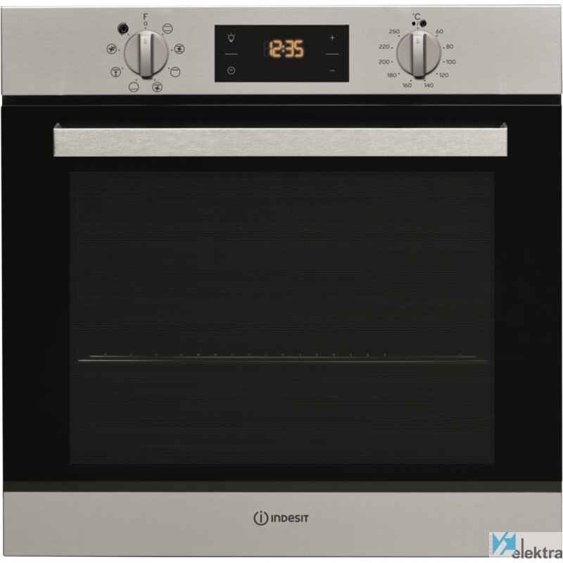 Indesit IFW 6544 IX. Tipo de horno: Horno eléctrico, Capacidad neta del horno: 71 L, Potencia de asador: 2200 W. Color del producto: Acero inoxidable, Tipo de control: Giratorio, Material de la carcasa: Acero inoxidable. Consumo de energía (convencional): 0,99 kWh, Consumo de energía (convección forzada): 0,81 kWh, Escala de eficiencia energética: A+++ a D. Ancho: 595 mm, Profundidad: 551 mm, ...Recipiente :
