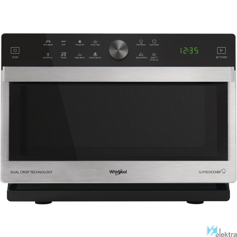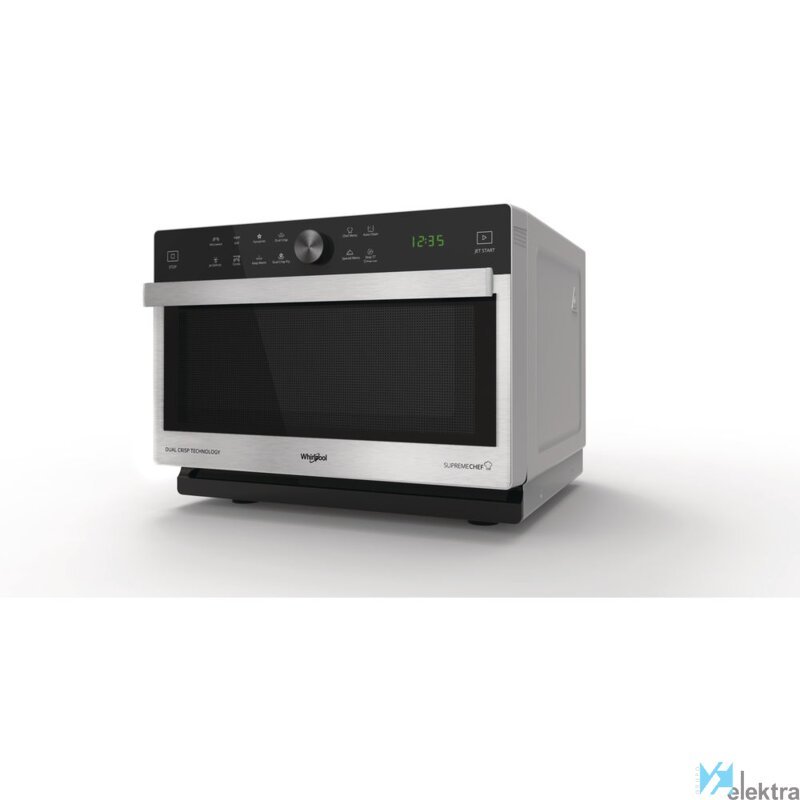 Whirlpool MWP 338 SX. Tipo de instalación: Encimera, Tipo de producto: Microondas combinado, Capacidad interior: 33 L, Potencia del microondas: 900 W, Pantalla incorporada, Tipo de visualizador: LED, Tipo de control: Giratorio, Tocar, Color del producto: Acero inoxidableRecipiente :