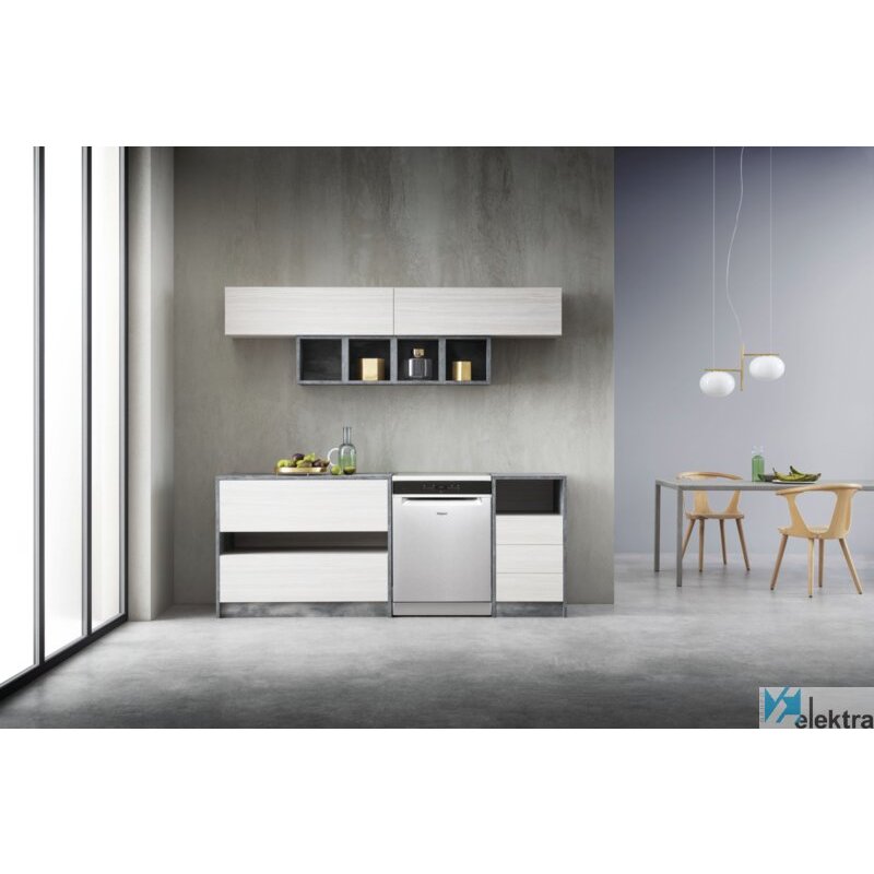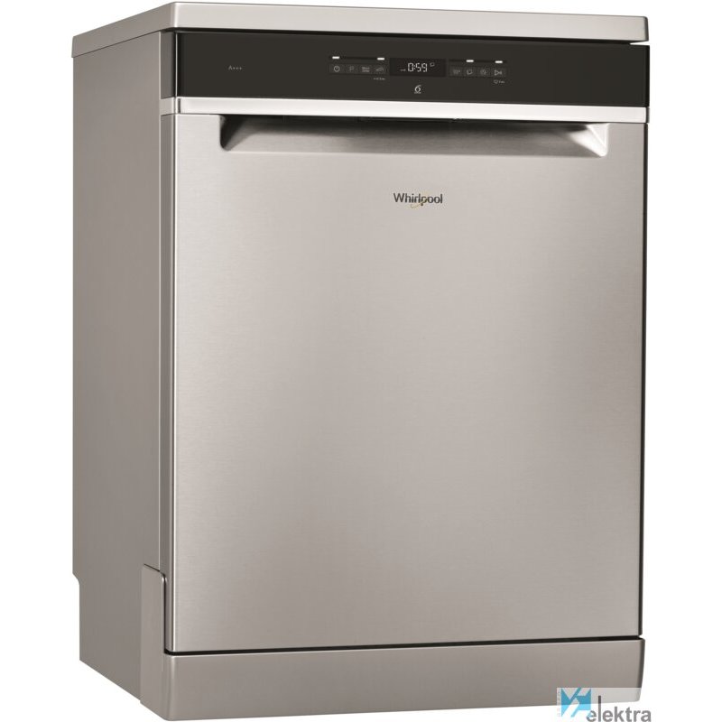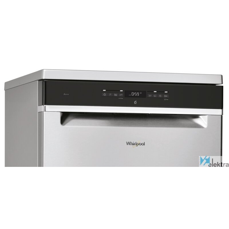 Whirlpool WFO 3T132 X. Tipo de instalación: Independiente, Talla del producto: Tamaño completo (60 cm), Color de la puerta: Acero inoxidable. Número de cubiertos: 14 cubiertos, Nivel de ruido: 42 dB, Programas de lavado: Auto 50-60 °C, Eco 50 °C, Vidrio/Delicado, Higiene, Intensivo, Prelavado, Rápido, Silencio. Consumo de agua por ciclo de lavado: 9,5 L, Escala de eficiencia energética: A+++ a D, Clase de eficiencia energética (antigua): A+++. Ancho: 600 mm, Profundidad: 590 mm, Altura: 850 mm. Ancho del paquete: 625 mm, Profundidad del paquete: 675 mm, Altura del paquete: 910 mm