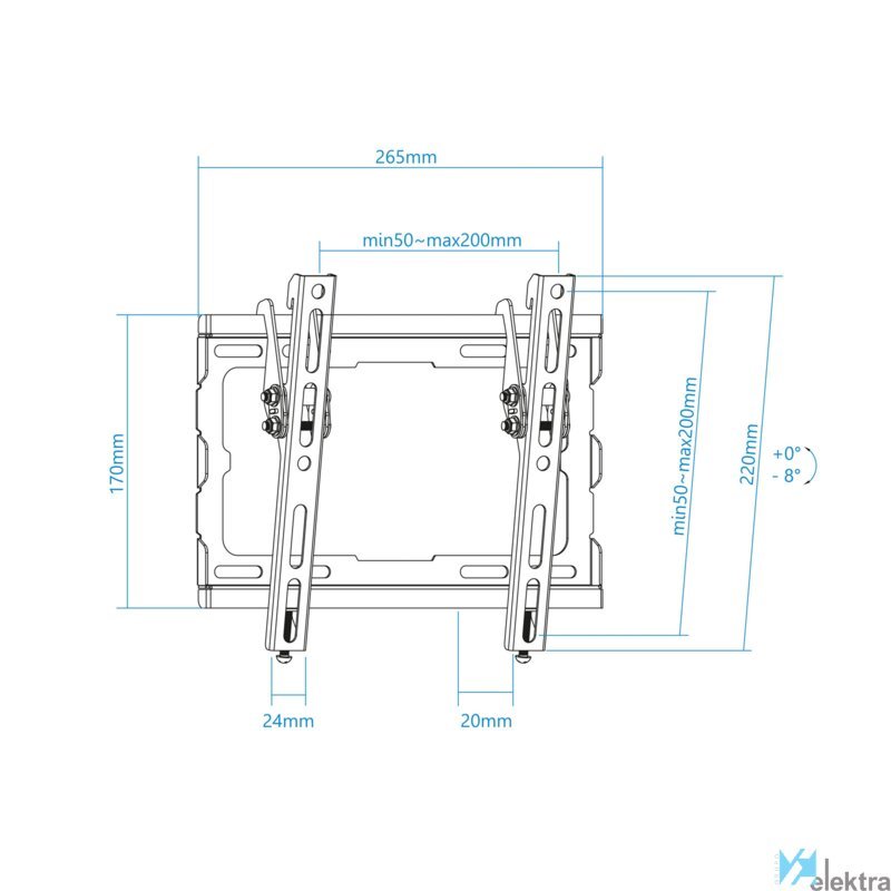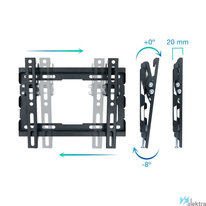 TooQ LP1044T-B. Capacidad máxima de peso: 45 kg, Tamaño mínimo de pantalla: 58,4 cm (23"), Tamaño máximo de pantalla: 109,2 cm (43"), Compatibilidad con interfaz de montaje (min): 50 x 50 mm, Compatibilidad con interfaz de montaje (max): 200 x 200 mm. Ángulo de inclinación: -8 - 0°, Distancia a la pared (min): 2 cm. Color del producto: Negro