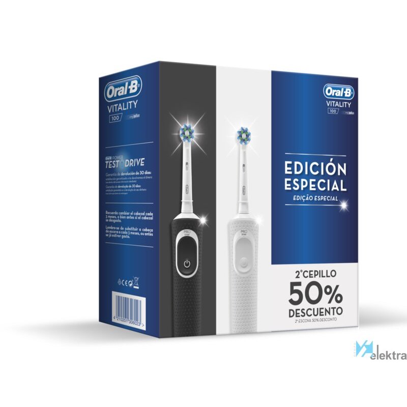 2 Oral-B Vitality 100 CrossAction Cepillos Eléctricos en Blanco y NegroRecipiente :