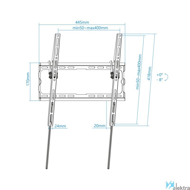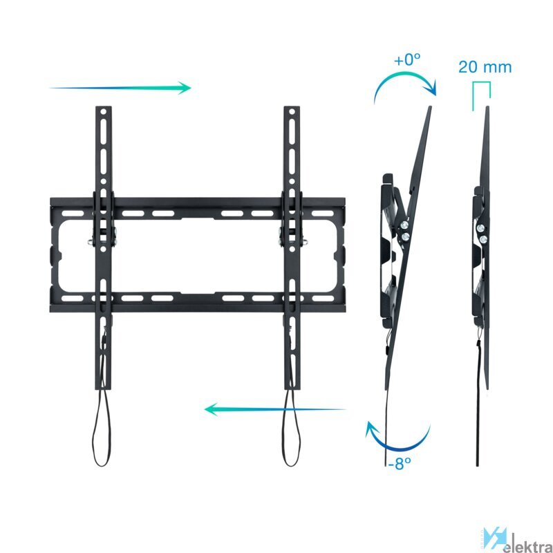 TooQ LP1071T-B. Capacidad máxima de peso: 45 kg, Tamaño mínimo de pantalla: 81,3 cm (32"), Tamaño máximo de pantalla: 177,8 cm (70"), Compatibilidad con interfaz de montaje (min): 75 x 75 mm, Compatibilidad con interfaz de montaje (max): 400 x 400 mm. Ángulo de inclinación: -8 - 0°, Distancia a la pared (min): 2 cm. Color del producto: Negro