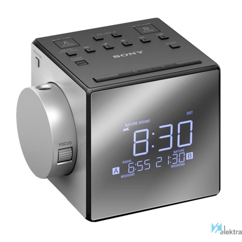 Sony ICF-C1PJ. Tipo de radio: Reloj, Tipo de sintonizador: Digital, Banda FM: 87,5 - 108 MHz. Color del producto: Plata. Tipo de batería: CR2032, Voltaje de la pila: 3 V. Frecuencia de entrada AC: 60 Hz. Ancho: 101 mm, Profundidad: 101 mm, Altura: 102 mm