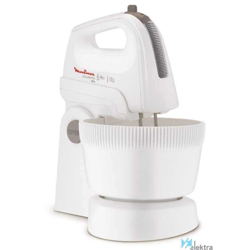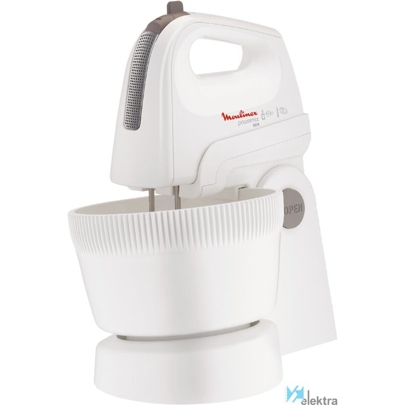 Moulinex HM6151. Tipo: Batidora de varillas, Color del producto: Blanco, Gris, Funciones de mezcla: Mezcla. Material de la carcasa: Plástico, Material de la cuchilla: Metal. Potencia: 500 W. Ancho: 92 mm, Profundidad: 218 mm, Altura: 178 mm. Ancho del paquete: 270 mm, Profundidad del paquete: 410 mm, Altura del paquete: 285 mmRecipiente :