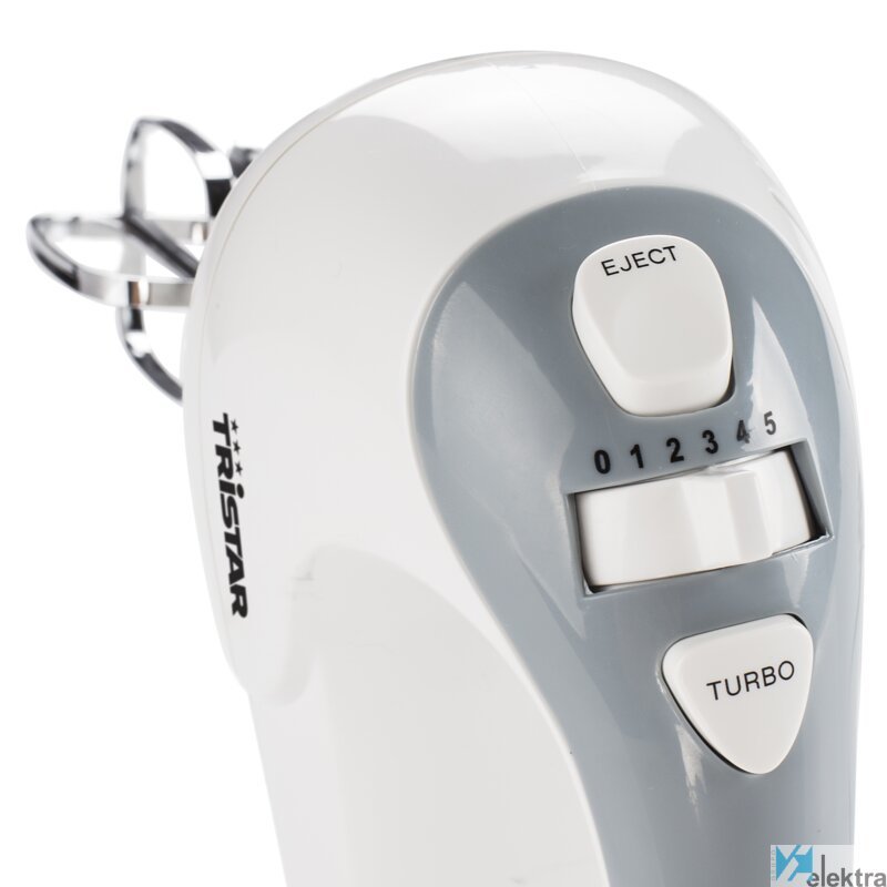 Tristar MX-4151 Batidora amasadora. Tipo: Batidora de mano, Color del producto: Blanco, Funciones de mezcla: Batir, Amasar, Mezcla. Material de la carcasa: Plástico. Potencia: 200 W, Voltaje de entrada AC: 230 V. Peso: 1,09 kg. Ancho del paquete: 215 mm, Profundidad del paquete: 100 mm, Altura del paquete: 180 mm