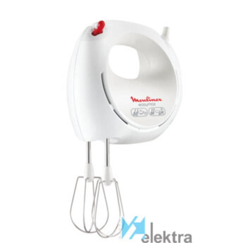 Moulinex Easy Max HM2501B1. Tipo: Batidora de mano, Color del producto: Blanco, Funciones de mezcla: Batir, Mezcla. Potencia: 200 W, Alimentación: Corriente alterna. Peso: 749 g. Ancho del paquete: 95 mm, Profundidad del paquete: 186 mm, Altura del paquete: 155 mm. Periodo de garantía: 3 año(s)