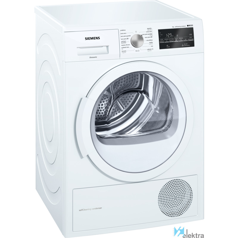 Siemens iQ500 WT47G429ES. Tipo de instalación: Independiente, Tipo de carga: Carga frontal, Sistema de secado: Bomba de calor. Capacidad nominal: 8 kg, Clase de eficiencia de condensación: A, Programas de secado: Lana, Mix, Programado, Delicado/seda, Microfibra, Blusa / camisa, Lencería, Toalla. Clase de eficiencia de energía: A++, Consumo de energía: 1,93 kWh, Consumo de energía anual: 233 kWh. Profundidad: 599 mm, Ancho: 598 mm, Altura: 842 mm