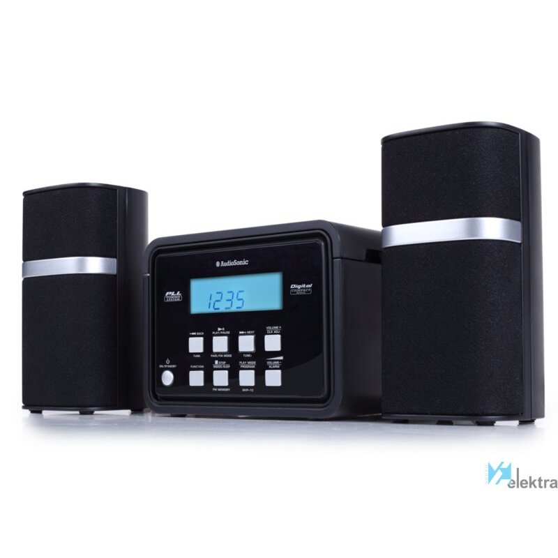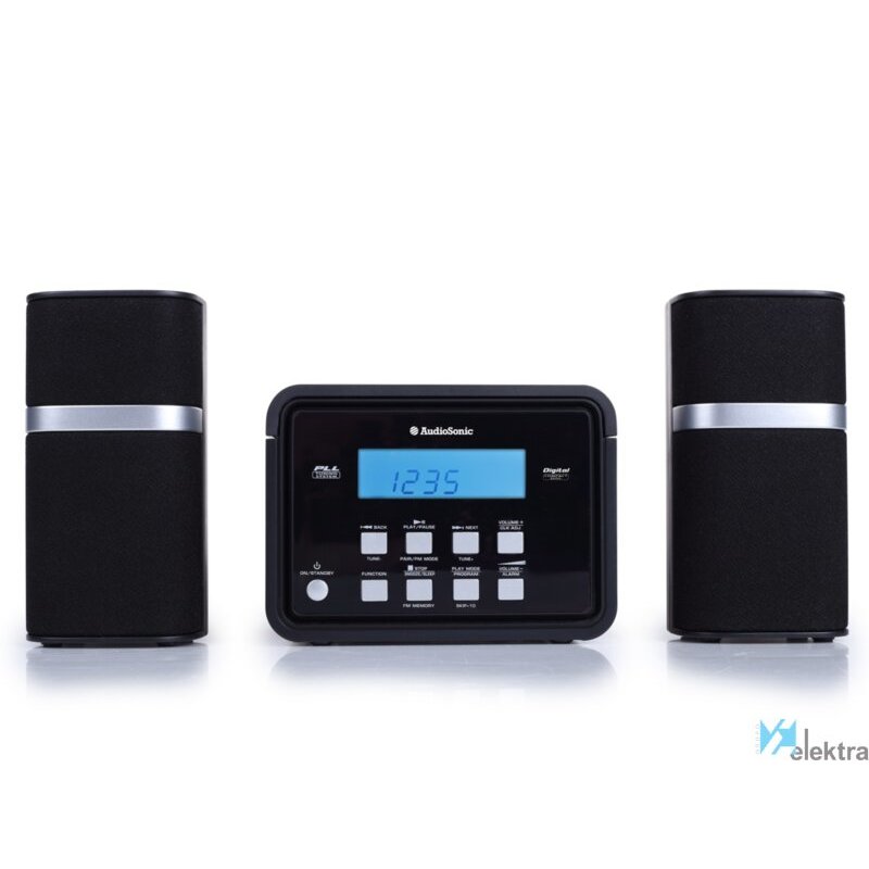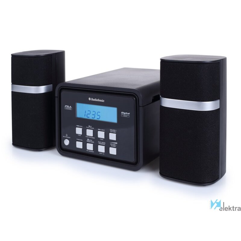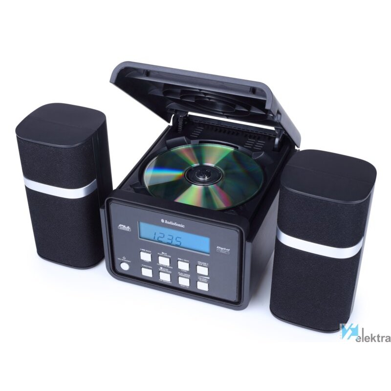 AudioSonic HF-1251 Minicadena. Tipo: Microcadena de música para uso doméstico, Color del producto: Negro, Número de discos ópticos: 1 discos. Potencia estimada RMS: 6 W, Tipo de altavoces: De 1 vía. Bandas de radio soportadas: FM, Tipo de sintonizador: Digital. Color de luz de fondo: Azul. Auriculares: 3,5 mm