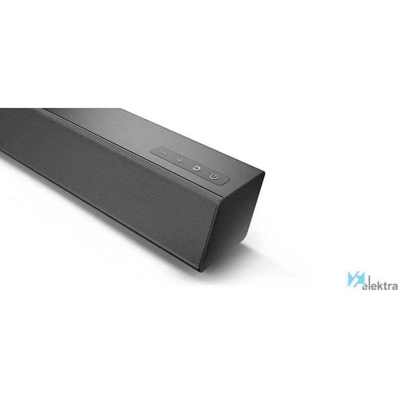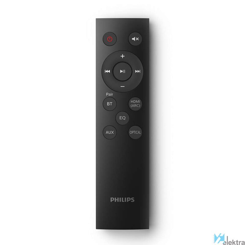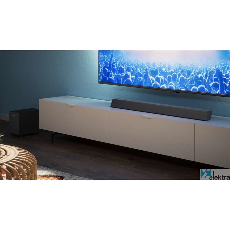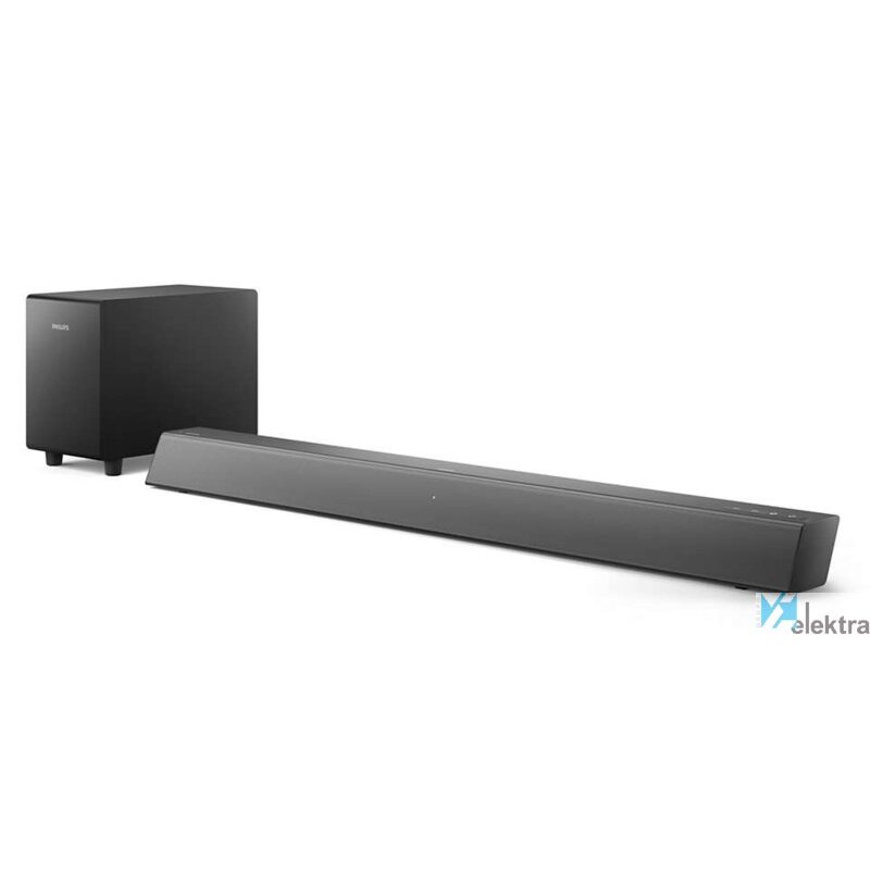 Philips TAB5308/10. Canales de salida de audio: 2.1 canales, Potencia estimada RMS: 70 W, Salida de pico de potencia musical (PMPO): 140 W. Potencia de la barra de sonido del altavoz RMS: 30 W, THD, distorción armónica total: 10%, Diámetro del woofer (imperial): 11,4 cm (4.5"). Conectividad del altavoz de subgraves (subwoofer): Inalámbrico, Potencia RMS de subwoofer: 40 W. Color del producto: Gris, Indicadores LED: Poder. Tecnología de conectividad: Inalámbrico y alámbrico