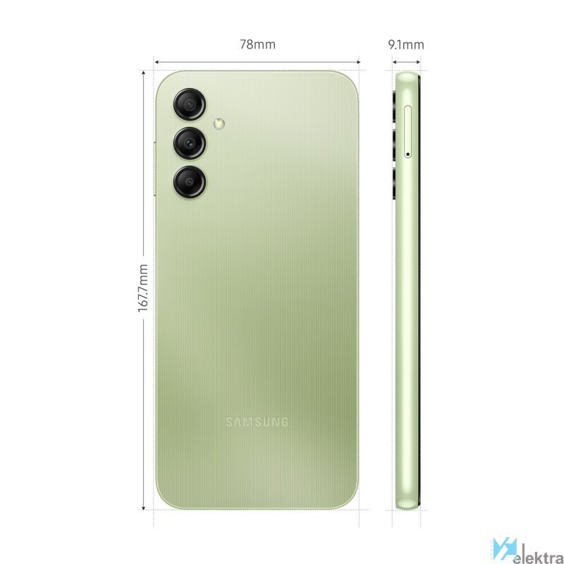 Samsung Galaxy A14 . Diagonal de la pantalla: 16,8 cm (6.6"), Resolución de la pantalla: 1080 x 2408 Pixeles. Frecuencia del procesador: 1,8 GHz. Capacidad de RAM: 4 GB, Capacidad de almacenamiento interno: 64 GB. Resolución de la cámara trasera (numérica): 50 MP, Tipo de cámara trasera: Triple cámara. Capacidad de la tarjeta SIM: SIM doble. Capacidad de batería: 5000 mAh. Color del producto: Verde claro. Peso: 201 g