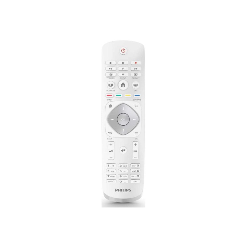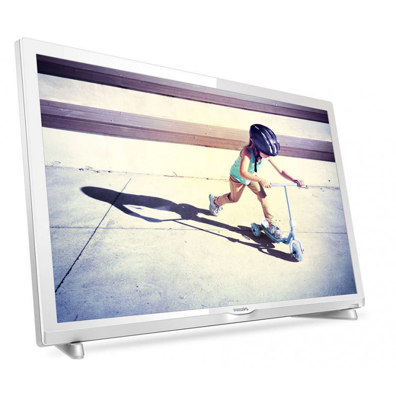 Televisor LED de 24" con resolución Full HD. Color blanco. Reproductor USB para películas, fotografías y música.
