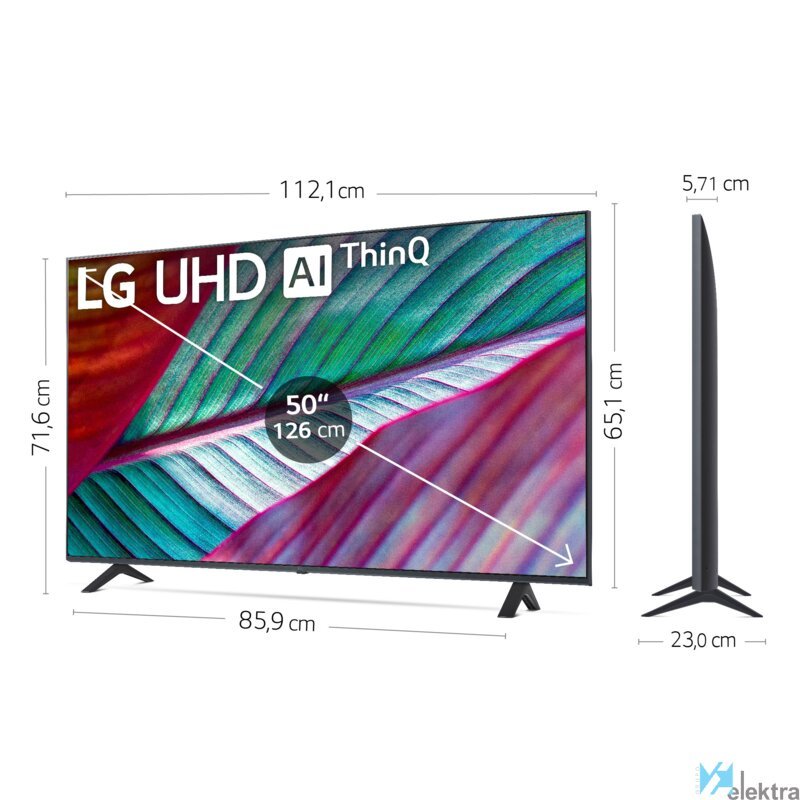 LG UHD 50UR78006LK. Diagonal de la pantalla: 127 cm (50"), Resolución de la pantalla: 3840 x 2160 Pixeles, Tipo HD: 4K Ultra HD, Tecnología de visualización: LED, Forma de la pantalla: Plana, Tipo de retroiluminación LED: Direct-LED. Smart TV. Relación de aspecto nativa: 16:9. Wifi, Ethernet. Color del producto: Negro