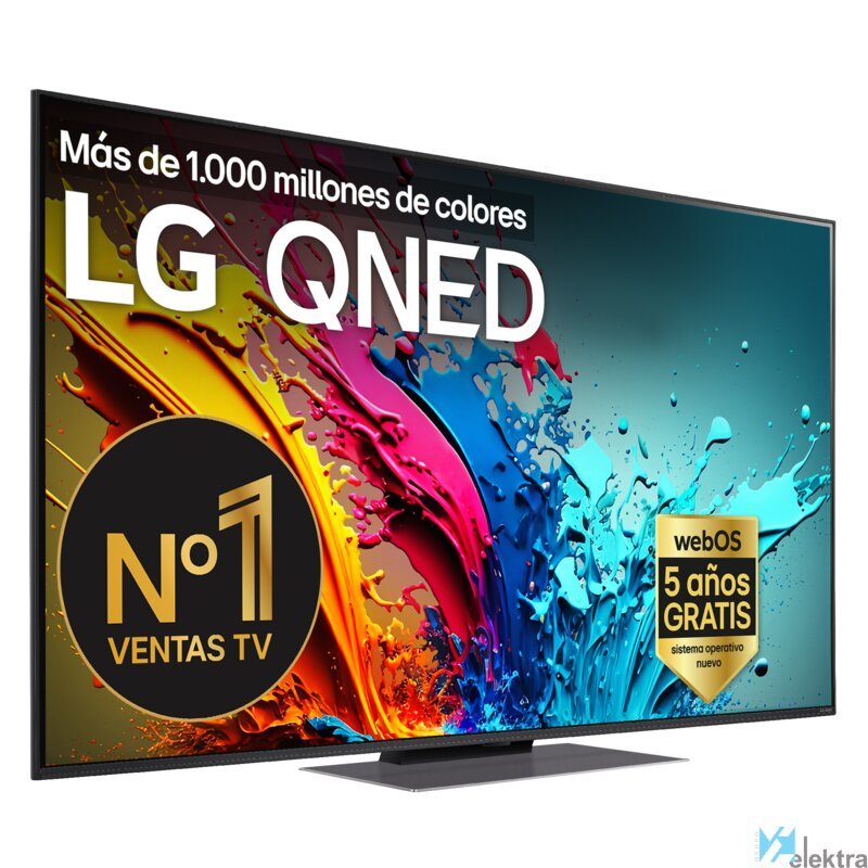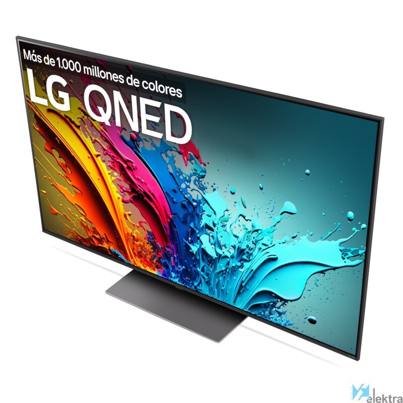 LG QNED 55QNED87T6B. Diagonal de la pantalla: 139,7 cm (55"), Resolución de la pantalla: 3840 x 2160 Pixeles, Tipo HD: 4K Ultra HD, Tecnología de visualización: QNED, Forma de la pantalla: Plana, Tipo de retroiluminación LED: Edge-LED. Smart TV. Tecnología de interpolación de movimiento: Motion Pro, Relación de aspecto nativa: 16:9. Formato de señal digital: DVB-C, DVB-S, DVB-S2, DVB-T, DVB-T2. Wifi, Ethernet. Color del producto: Negro, Plata
