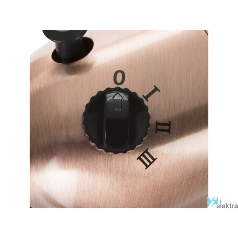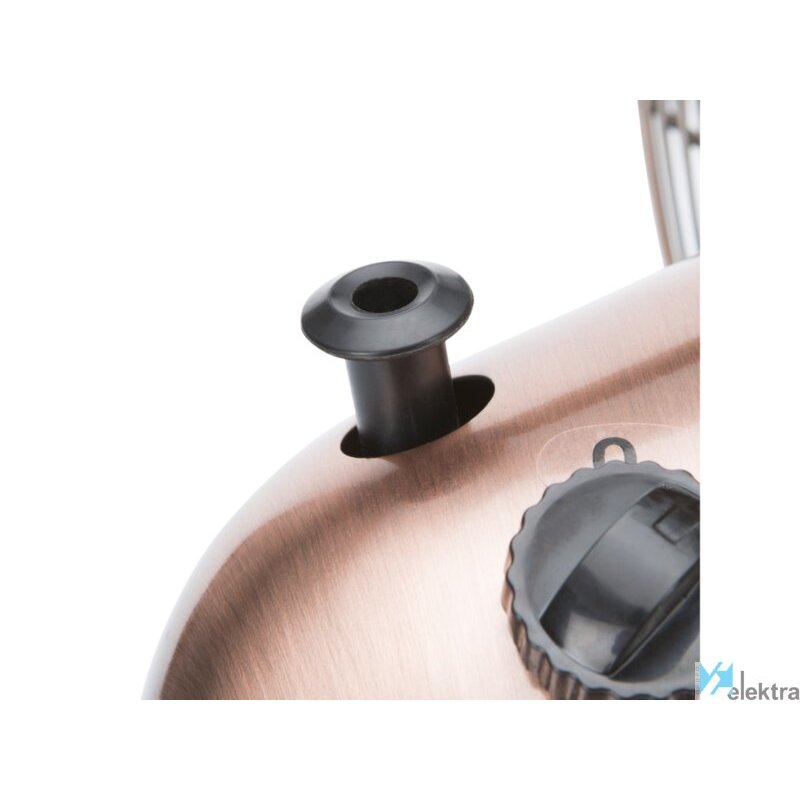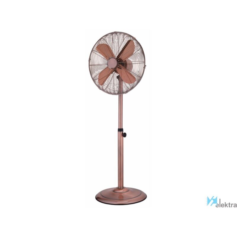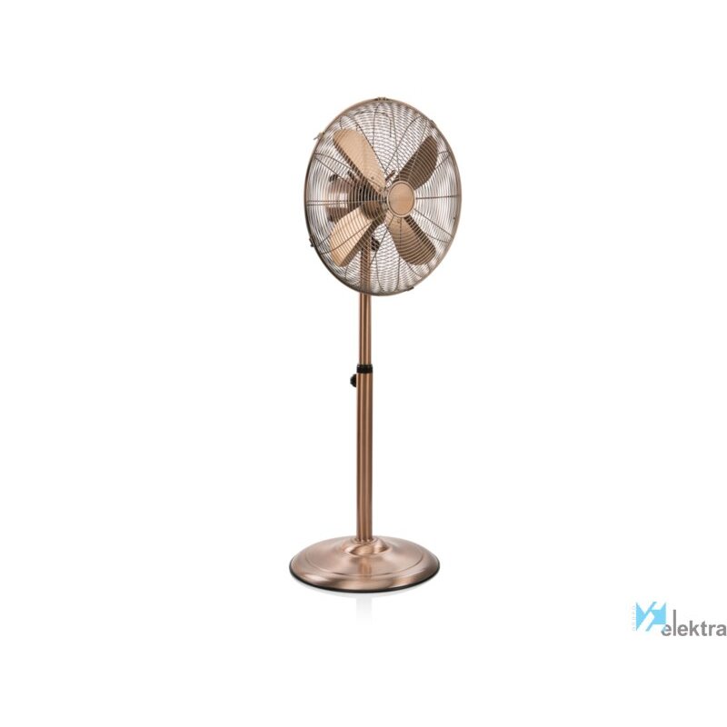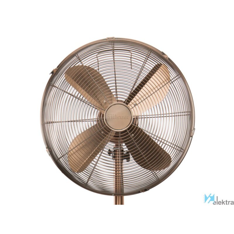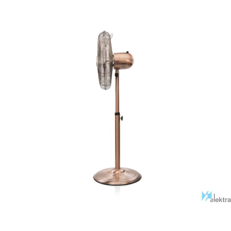 Tristar VE-5971 Ventilador de pie Retro. Tipo: Ventilador con aspas para el hogar, Color del producto: Cobre, Ubicación: Piso. Alimentación: Corriente alterna, Consumo energético: 50 W, Voltaje de entrada AC: 220-240 V. Peso: 6,3 kg. Ancho del paquete: 465 mm, Profundidad del paquete: 160 mm, Altura del paquete: 595 mm. Cantidad por contenedor (20ft): 688 pieza(s), Cantidad por contenedor (40ft): 1410 pieza(s), Cantidad por contenedor intermodal (40ft, HC): 1510 pieza(s)