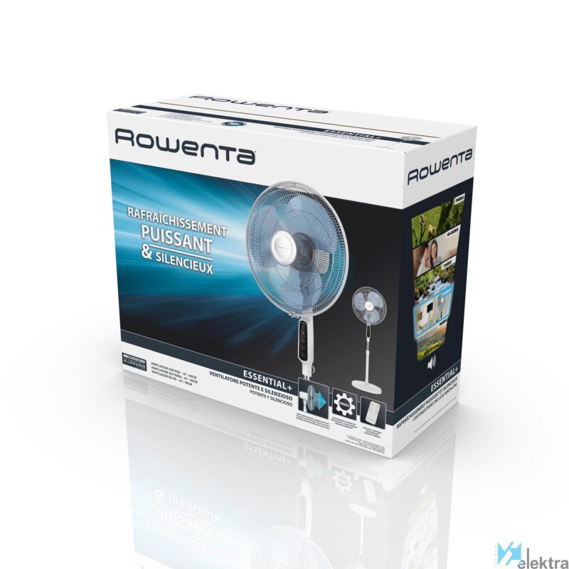 Rowenta Essential+ VU4440. Tipo: Ventilador con aspas para el hogar, Color del producto: Blanco, Ubicación: Piso. Alimentación: Corriente alterna, Frecuencia de entrada AC: 50 - 60 Hz. Ancho: 140 mm, Profundidad: 540 mm, Altura: 1330 mm. Ancho del paquete: 220 mm, Profundidad del paquete: 535 mm, Altura del paquete: 450 mm. Cantidad por contenedor (20ft): 550 pieza(s), Cantidad por contenedor ...Recipiente :