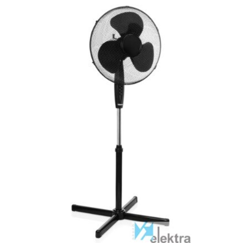 Tristar VE-5894 Ventilador de pie. Tipo: Ventilador con aspas para el hogar, Color del producto: Negro, Ubicación: Piso. Alimentación: Corriente alterna, Consumo energético: 45 W, Voltaje de entrada AC: 220 - 240 V. Ancho: 620 mm, Profundidad: 620 mm, Altura: 1250 mm. Ancho del paquete: 560 mm, Profundidad del paquete: 105 mm, Altura del paquete: 435 mm. Cantidad por contenedor (20ft): 1200 pieza(s), Cantidad por contenedor (40ft): 2400 pieza(s), Cantidad por contenedor intermodal (40ft, HC): 2700 pieza(s)