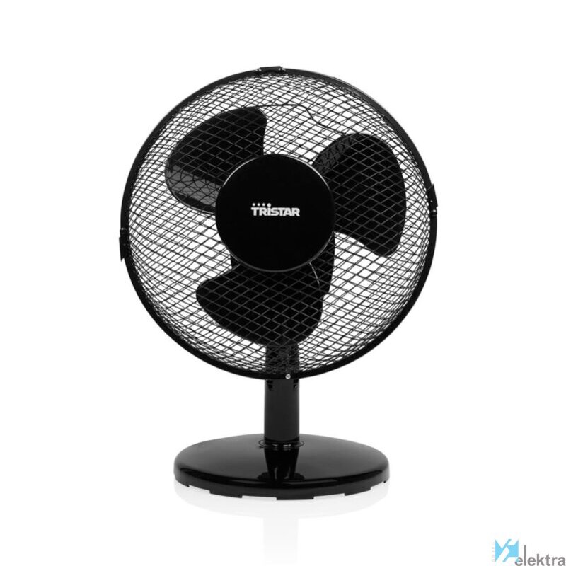 Tristar VE-5722 Ventilador de mesa. Tipo: Ventilador con aspas para el hogar, Color del producto: Negro, Ubicación: Mesa. Alimentación: Corriente alterna, Consumo energético: 30 W, Voltaje de entrada AC: 220-240 V. Ancho: 275 mm, Profundidad: 245 mm, Altura: 345 mm
