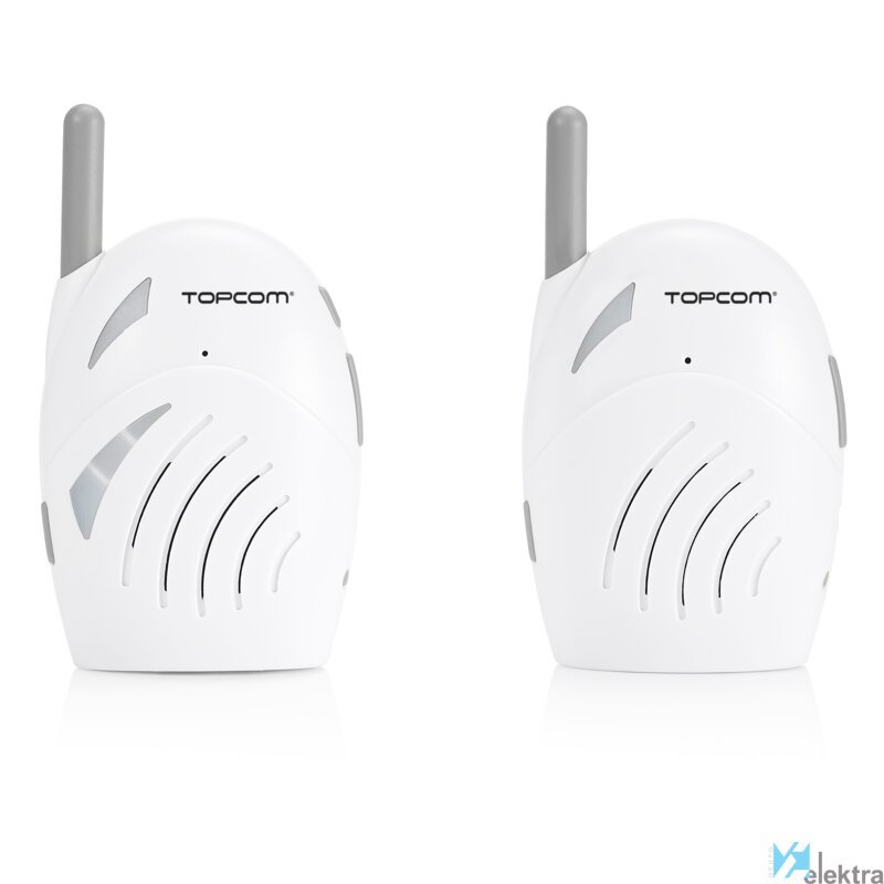 Topcom KS-4216 Monitor audio para bebé. Tipo: Vigilabebés con tecnología DECT, Cantidad de canales: 2 canales, Alcance máximo: 300 m. Color del producto: Blanco. Fuente de alimentación del transmisor: Batería, Fuente de alimentación del receptor: Batería. Ancho del paquete: 102 mm, Profundidad del paquete: 127 mm, Altura del paquete: 190 mm. Frecuencia de banda: 2.4 GHz, Peso: 119 gRecipiente :