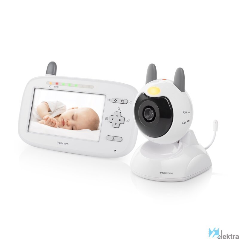 Topcom KS-4248 Vigilabebé. Tipo de LED: IR, Zoom digital: 2x, Velocidad de cuadro: 25 pps. Alcance máximo: 300 m, Control de volumen: Digital, Rango máximo en interiores: 50 m. Interfaz: FHSS, Frecuencia de banda: 2.4 GHz. Color del producto: Blanco. Diagonal de la pantalla: 10,9 cm (4.3"), Tipo de visualizador: LCD